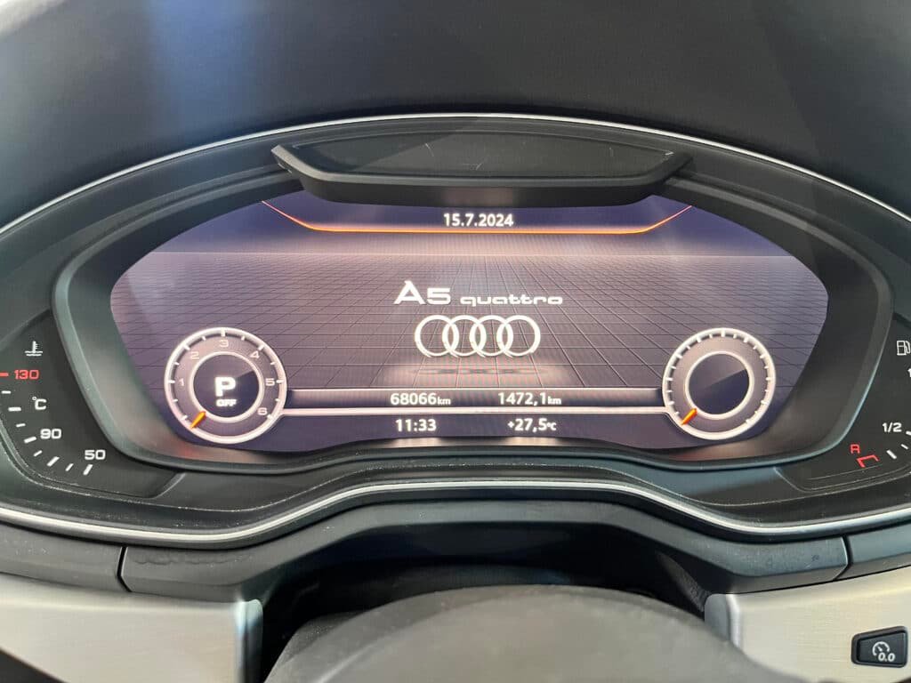 Equipamiento; -trancion quatro -faros matrix led -Sistema de navegacion -asientos en piel y alcantara -Paquete s-line -luz ambiente -aviso por invasion de carril -frenada de emergencia por aproximacion -sensores de luz y lluvia -camara de marcha atras -sensores de aparcamiento delanteros y traseros -llantas audi sport en 19" -kilómetros certificados -Disponemos de mas de 60 vehiculos en stock -Transferencia y 1 año de garantía incluidos en el precio. -Anuncio no vinculante,puede contener errores ,se muestra a titulo informativo y no contractual. Audi A5 Coupe en Benalup-Casas Viejas Precio al contado 27999€